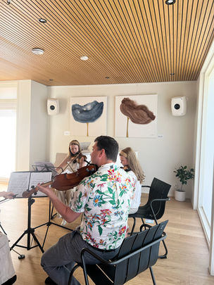"Olohuoneen akustiikkataiteessa meitä viehättää tilaan sopiva tunnelma ja sävymaailma. Ruokailutilan teoksen rohkea sävyvalinta ja abstrakti muotokieli ihastuttavat. Makuuhuoneen freesia tuo tilaan raikkaan ja arvokkaan säväyksen."