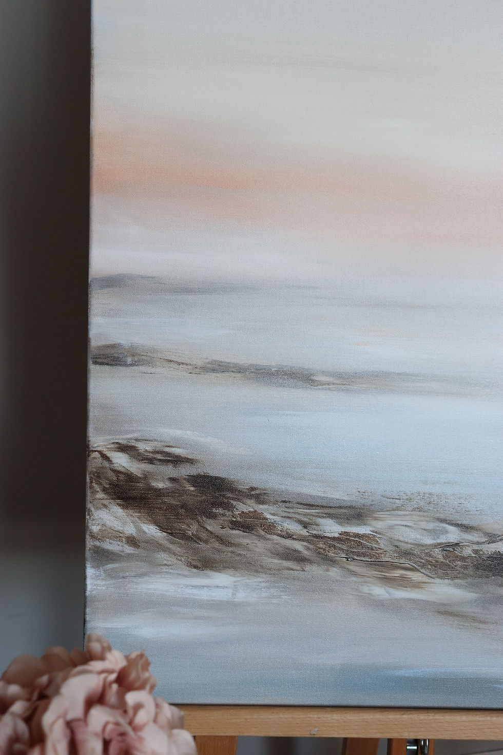 "Vaikka minua kiehtoo pohjoisen luonnon kaunis karuus, on taiteessani läsnä myös vastapuoli: herkät taivaanrannan pastellisävyt ja kukkaset."